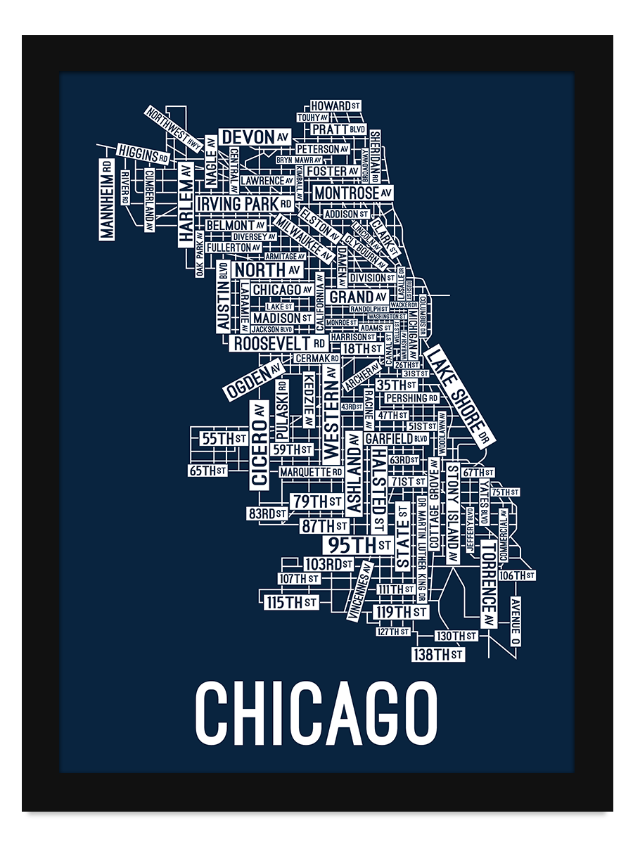 Chicago, Illinois Street Map Poster School Street Posters