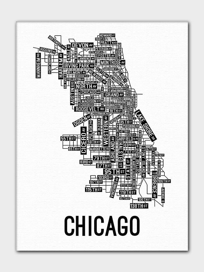 Chicago, Illinois Street Map Canvas School Street Posters